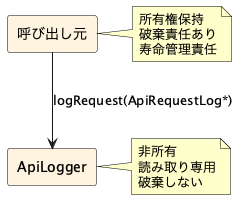 ログの内容は毎回API呼び出しごとに構造体としてまとめられますが、Logger自体はその情報を「読んで記録するだけ」であり、寿命管理や所有は持ちません。