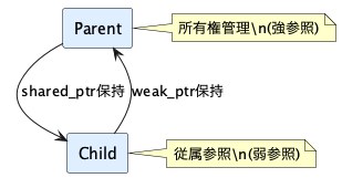 std::weak_ptr<Parent> parent; // 弱参照にすることで循環を防止
