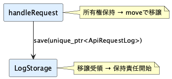 storage.save(std::move(logEntry)); // 明示移譲