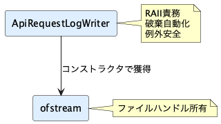 std::ofstream file_; // RAII:スコープ終了時に自動クローズ