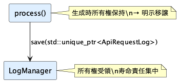 void save(std::unique_ptr<ApiRequestLog> logEntry);観点チェックリスト