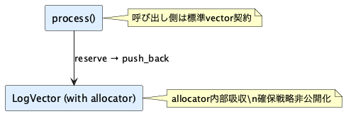 void save(const std::vector<ApiRequestLog>& logs);内部実装でのallocator採用は非公開に留める。