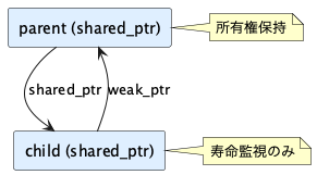 std::weak_ptr<ApiRequestLog> weakLog = sharedLog;weak_ptrの主な利用目的