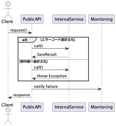 | 内部サービスAPI | 例外方式 | 設計自然文化維持 |