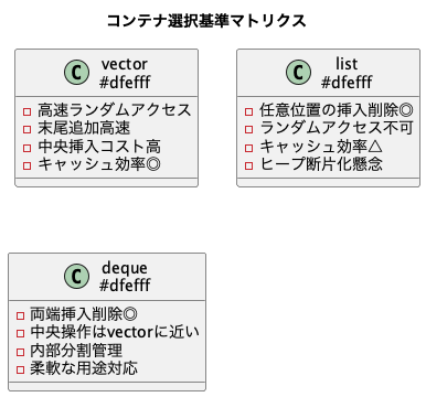 - vector・list・dequeを選ぶ際の実務的な基準を整理