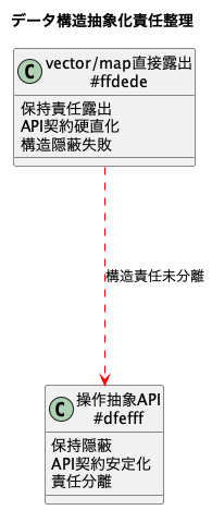 データ構造抽象化レビューでは以下の設計責任整理が問われる。