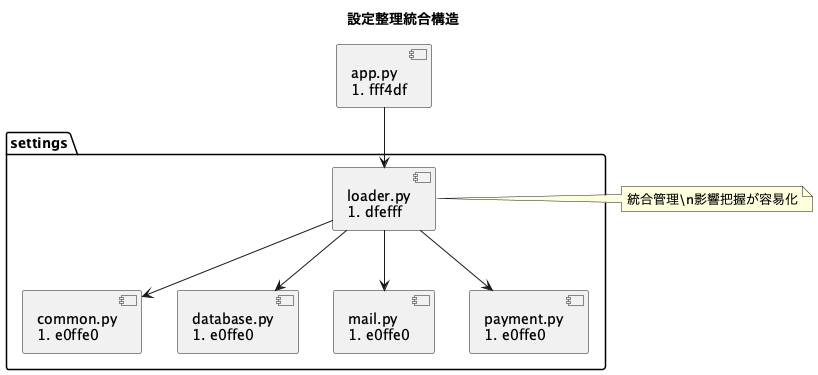 - 項目群単位でファイル分離(例: database.py, mail.py, payment.py)