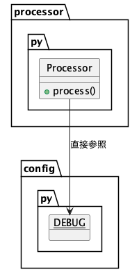この構造では、DEBUG が明示的な依存関係として示されず、Processor の外部挙動に依存した状態となっており、設計上の密結合を引き起こします。