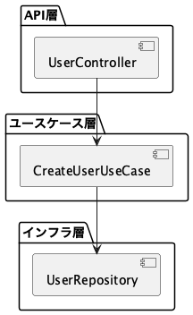 まず基本的な構造と役割を押さえておく。以下は典型的な3層構造(Controller / UseCase / Repository)をモデル化したものだ。